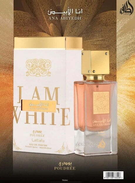 Brand Lattafa Perfumes Item Form Spray Item Volume 60 Milliliters Material Type Free Chemical Free Age Range (Description) Adult A fluffy, slightly sweet, powdery fragrance full of purity and tenderness, that's Ana Abiyedh Poudree. The sensual scent of roses opens the fragrant concert, which is joined by the oriental spicy touches of nagarmotha, aired by a bubbly accord of musk. A light swing into earthiness, that's a herbal note with patchouli and bitterly melting saffron, to be caressed by a vanilla, deliciously whipped mousse with caramel crystals. Honey notes, hiding behind velvety amber with some echoes of oud oil, are complemented by cocoa-soft tonka, whose milky vanilla is further emphasized by the addition of guaiac wood.